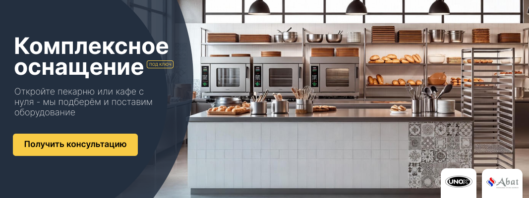 Мы можем подобрать индивидуальное решение по оборудованию Вашего бизнеса с нуля и под ключ. В нашем ассортименте присутствуют печи, холодильное и торговое оборудование, хлеборезки, тестомесы, погрузочно-разгрузочное оборудование, а также мы распологаем собственным производством нейтрального оборудования: противни, формы, производственные столы и полки из нержавеющей стали. Наша компания является официальным поставщиком промышленного пищевого оборудования в Казахстане производства Италии, Турции, Германии, России.